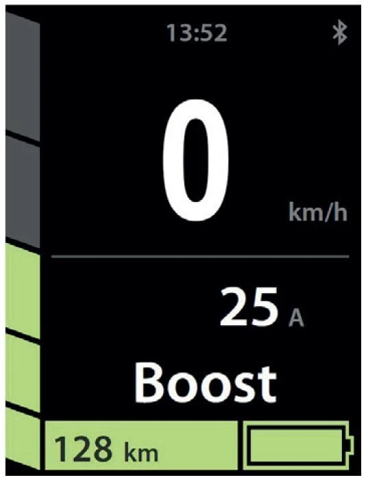 - zusätzlich kann das Smartphone als zweites Anzeigengerät benutzt werden, wenn es am Lenker befestigt wird. Somit lassen sich Tageskilometer, Durchschnittsgeschwindigkeit etc. anzeigen