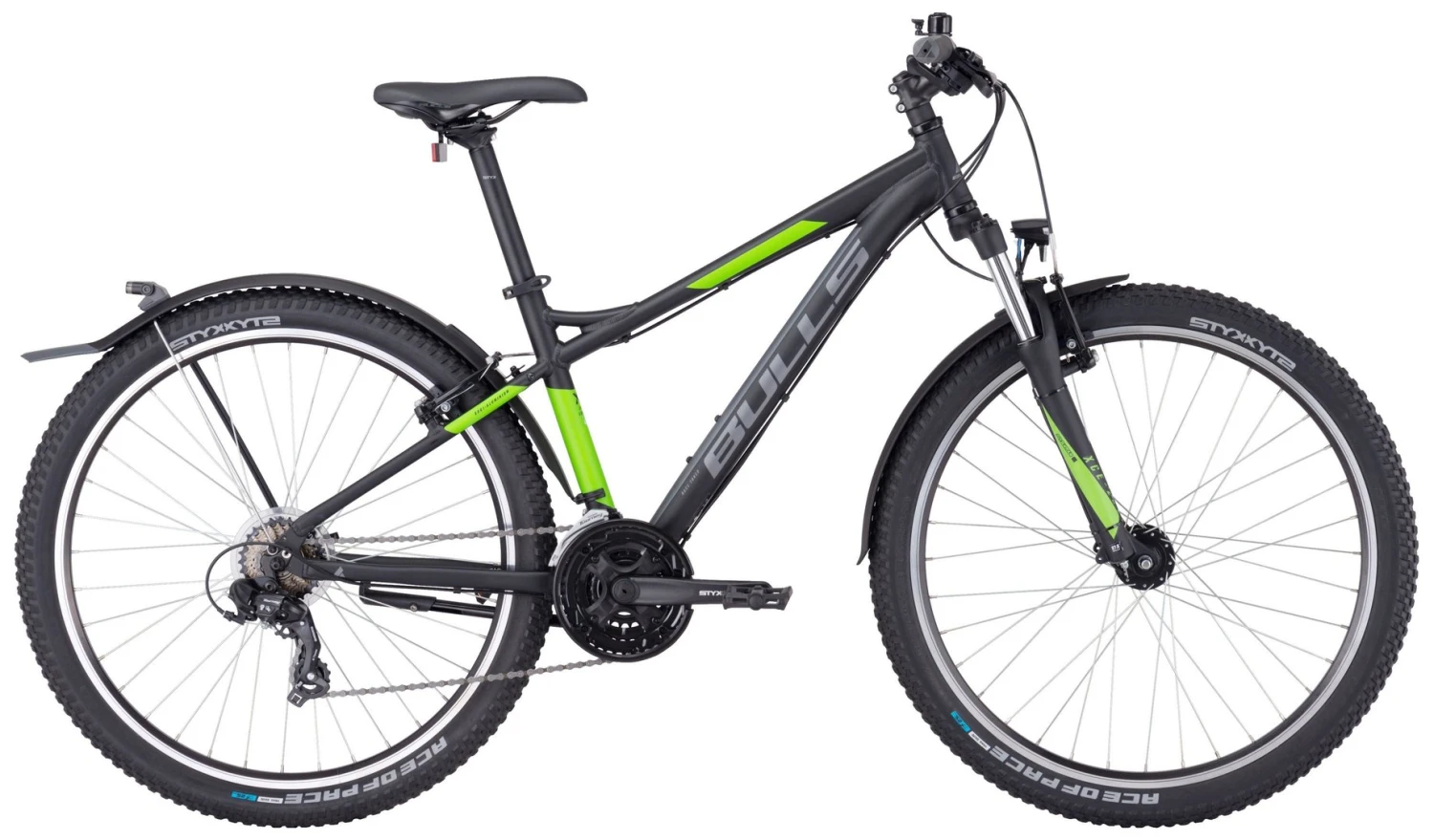 6061 Alu-Rahmen, Suntour XCE Federgabel einstellbar, 21-Gang Tourney Schaltung mit EZ-Fire Schalthebeln, STYX Alu Tretlager, Nabendynamo, DBM-2 Hohlkammerfelgen, Tektro V-Bremsen, STYX Sattelstütze, Downhill-Lenker und Vorbau, 30 Lux LED-Lampe, Standrücklicht, Ständer, Schutzbleche