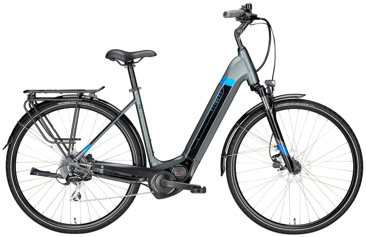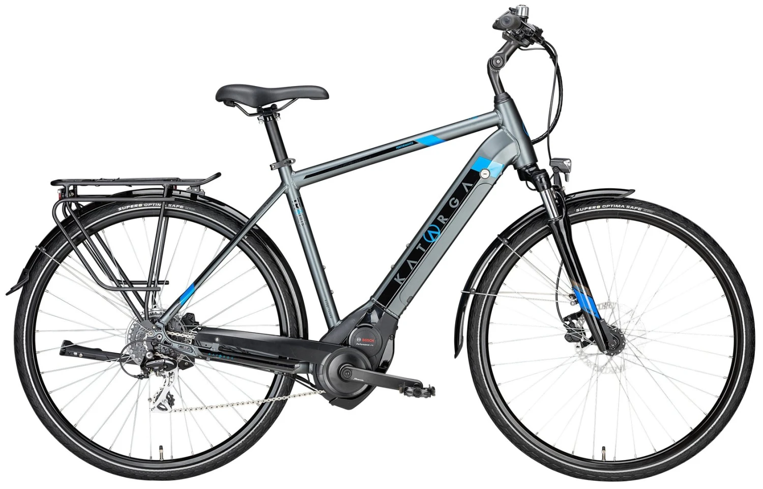 7005 Alu-Rahmen mit innenverlegten Kabeln und integriertem Akku, NEX-E25-DS Federgabel, Acera 8-Gang Schaltwerk, Altus Schalthebel, Tektro HD-M285 Disc-Bremsen (160/180mm), DDM-1 Hohlkammerfelgen, verstellbarer Lenkervorbau, Bosch Performance Line Mittelmotor mit 500Wh Akku, Supero Optima Safe Reifen 40-622, 15 Lux LED-Lampe, I-Rack Gepäckträger