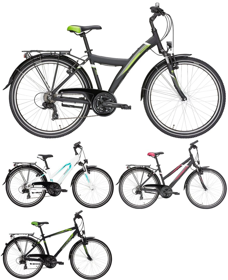 Big-Size Alurahmen mit Federgabel, Shimano Tourney Kettenschaltung mit Rapid-Fire Schalthebeln, Suntour Alu Kurbeln, Alu V-Bremsen vorne und hinten, Alu-Hohlkammerfelgen, MTB-Lenker, Bar-Ends, Kettenschutz, Straßenausstattung mit Shimano Nabendynamo, Standrücklicht und 15-Lux LED-Lampe