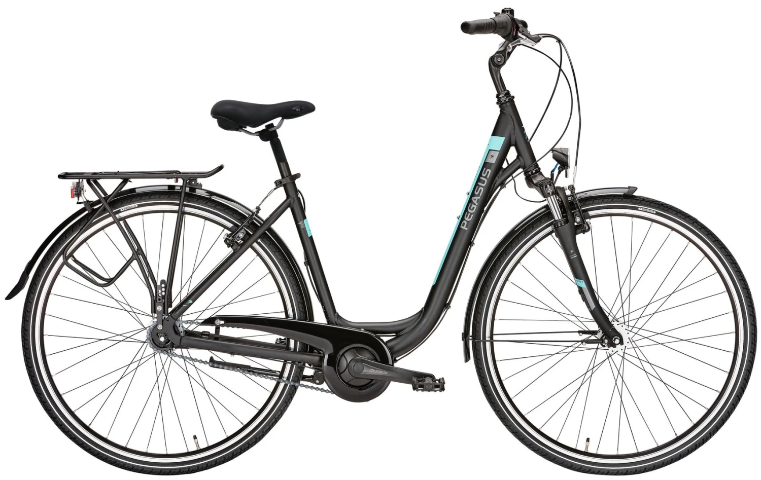Alu Rahmen, Suntour CR-7V Federgabel, Shimano Nexus Nabenschaltung mit Rücktritt und Drehgriff, Tektro V-Bremsen, Suntour Alu Kurbeln, DBM-2 Alu Hohlkammer-Felgen, verstellbarer Vorbau, Nexus Nabendynamo, 15 Lux LED-Lampe, Standrücklicht, Selle Royal Freeway Sattel, I-Rack Gepäckträger, einstellbarer Seitenständer