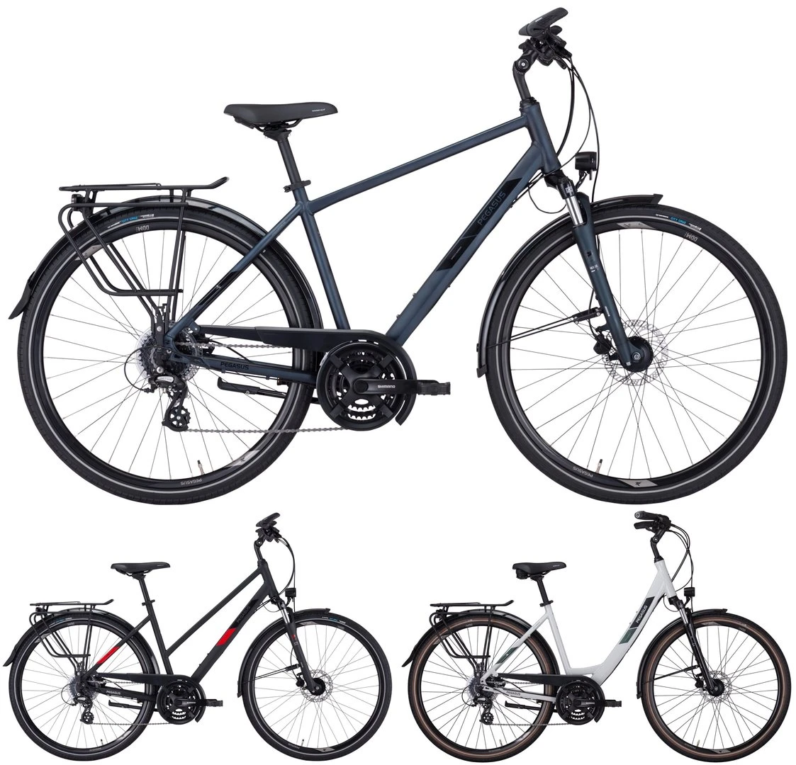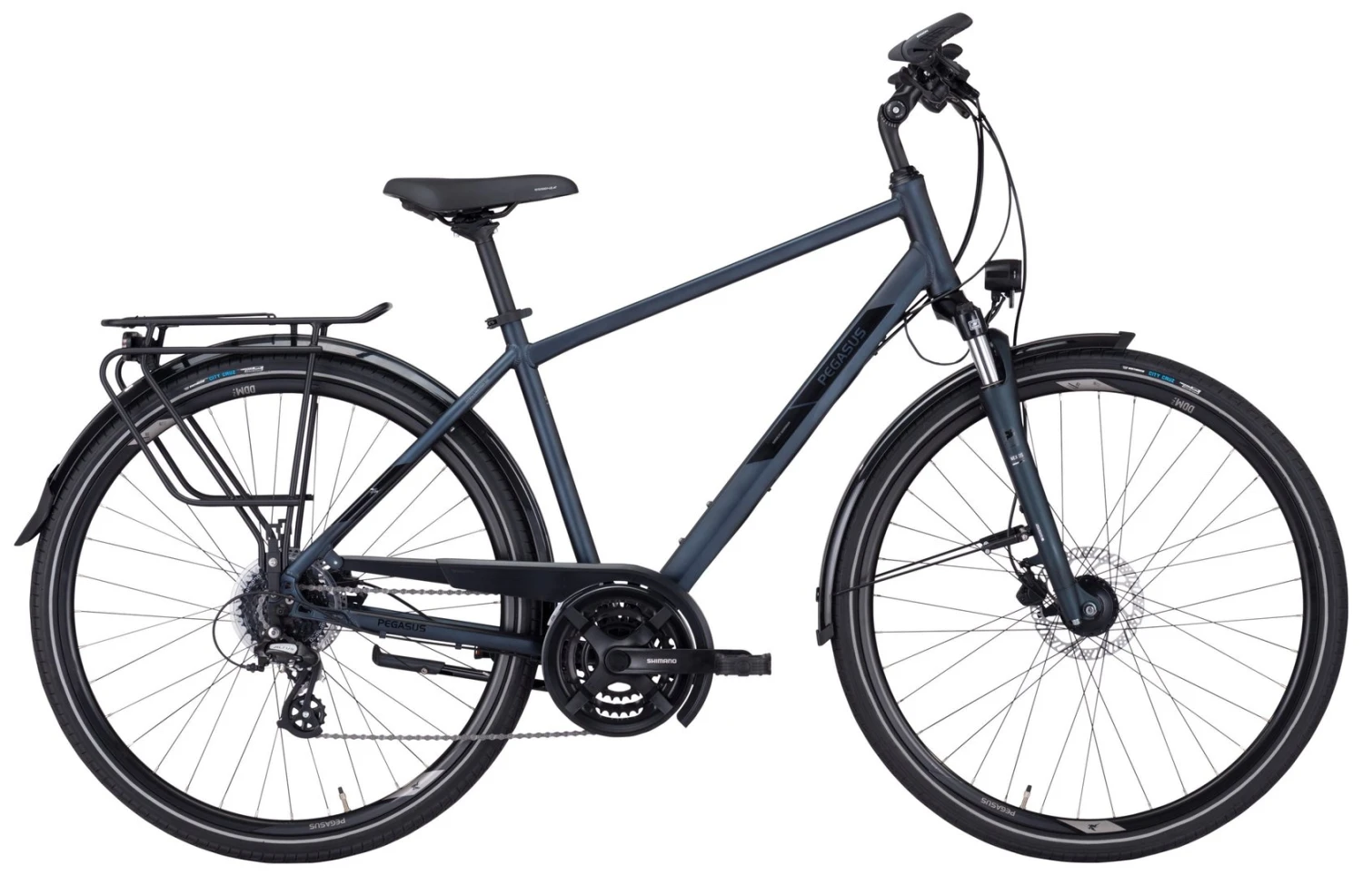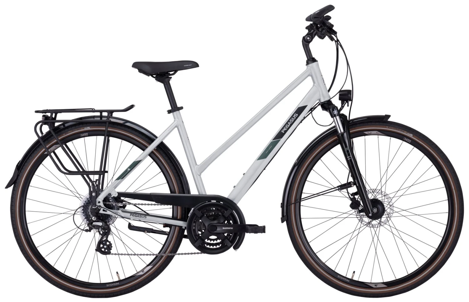 6061 Alu-Rahmen, Suntour NEX-DS einstellbare Federgabel, Altus Schaltwerk und Schalthebel Tourney Umwerfer und TY301 Kurbeln, Tektro HD-T275 Scheibenbremsen, DDM-2 Hohlkammer-Felgen, Vee Tire City Cruz 44-622, verstellbarer Vorbau, Ergon Griffe, Nabendynamo, 50 Lux LED-Lampe, Standrücklicht, einstellbarer Ständer, MonkeyLoad-T Gepäckträger