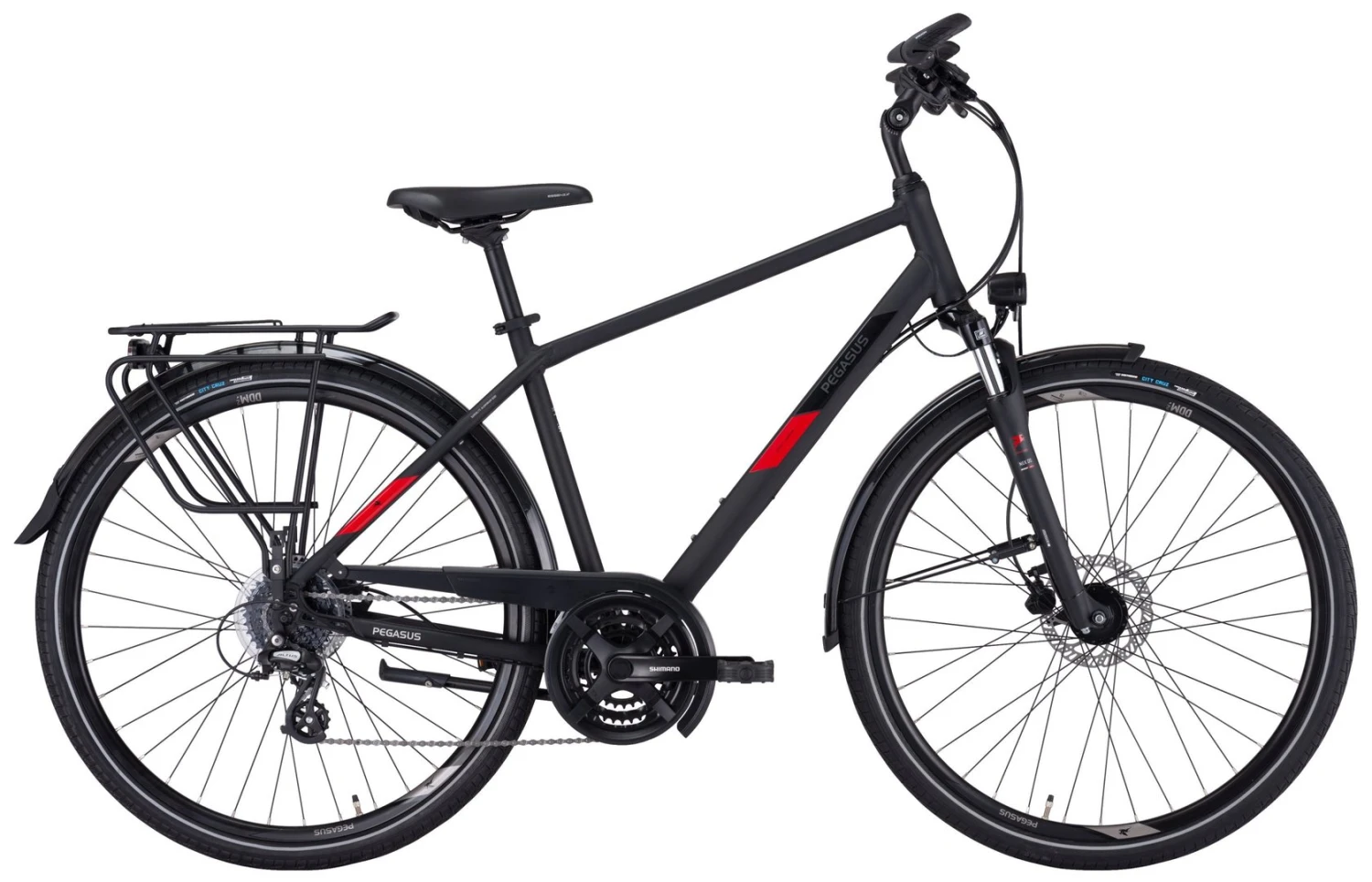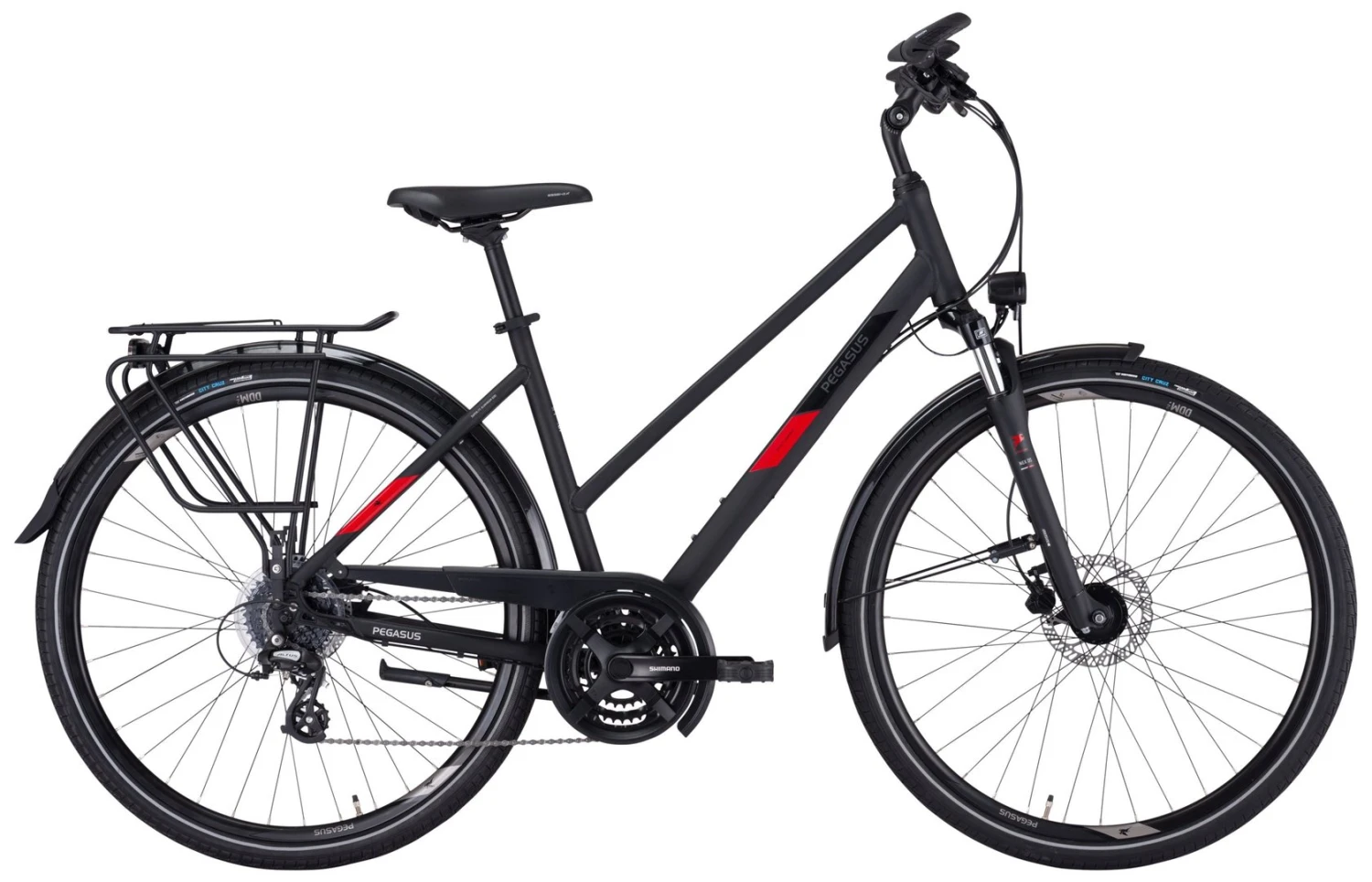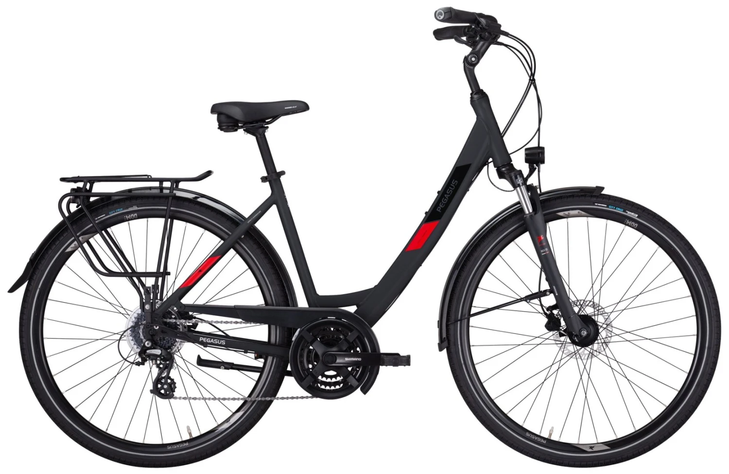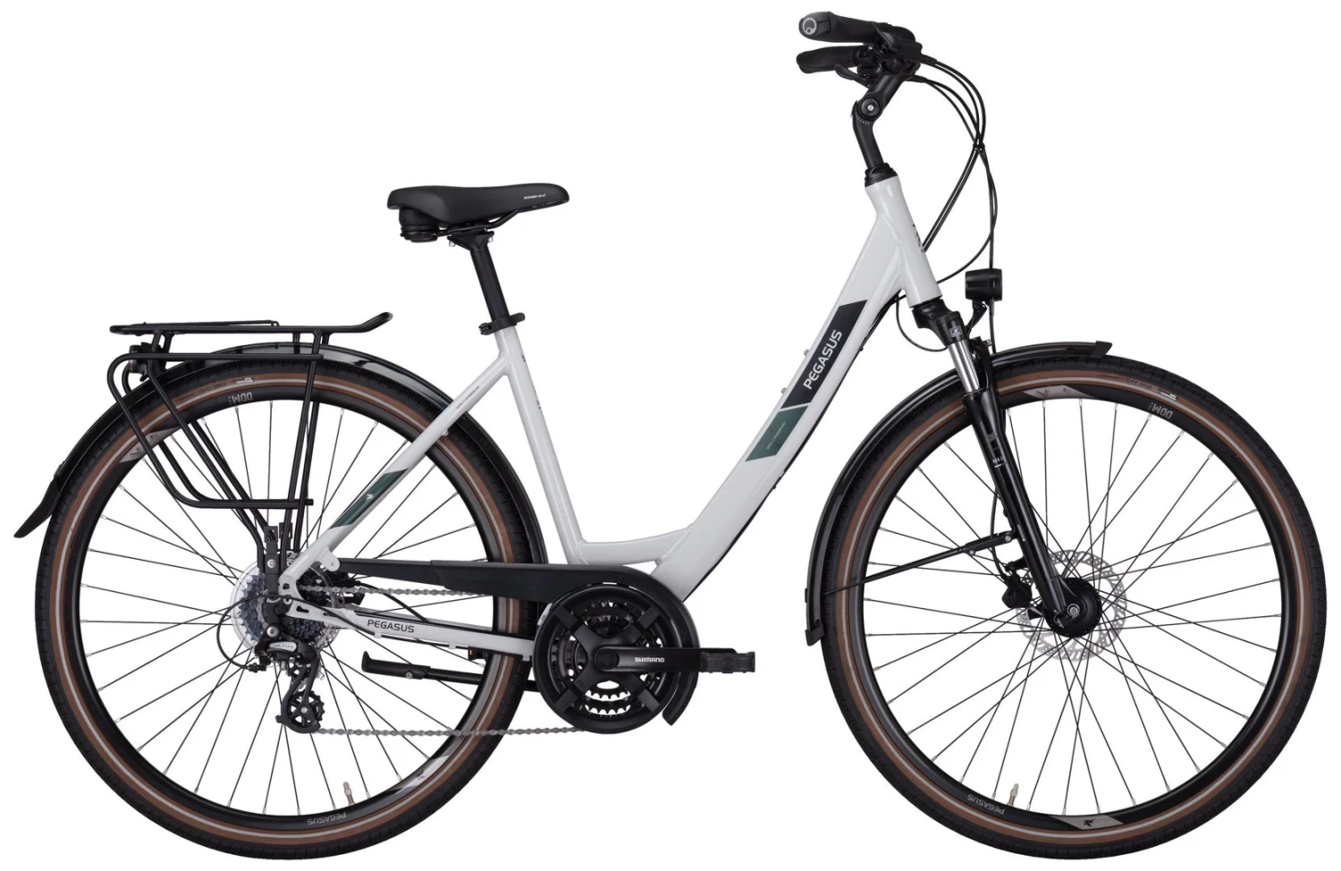 6061 Alu-Rahmen, Suntour NEX-DS einstellbare Federgabel, Altus Schaltwerk und Schalthebel Tourney Umwerfer und TY301 Kurbeln, Tektro HD-T275 Scheibenbremsen, DDM-2 Hohlkammer-Felgen, Vee Tire City Cruz 44-622, verstellbarer Vorbau, Ergon Griffe, Nabendynamo, 50 Lux LED-Lampe, Standrücklicht, einstellbarer Ständer, MonkeyLoad-T Gepäckträger