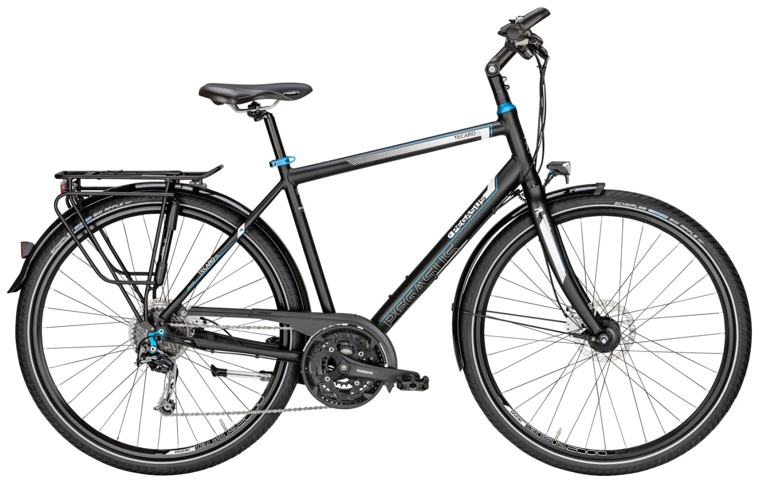 7005 Alu-Rahmen, Alu Starrgabel, Deore Schaltwerk, Altus Schalthebel und Umwerfer, Acera Kurbeln, Tektro Auriga Scheibenbremsen, Hohlkammer-Felgen, verstellbarer Vorbau, Fix-System Griffe mit Bar-Ends, Nabendynamo, LED-Lampe, Standlicht